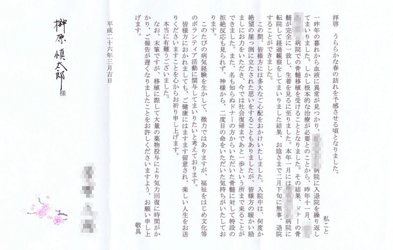 友人は、誰かがドナー登録をしていたおかげで助かりました。