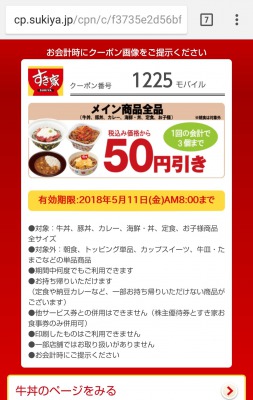 私はすき家のモバイル会員になっていますので、クーポンもしっかり使います。