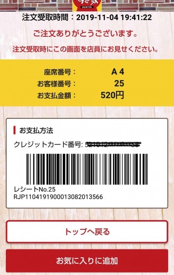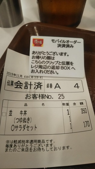 今までなら、このとき伝票が置かれ、食べ終わったらそれをレジに持っていくわけですが、今回はこのようになっていました。