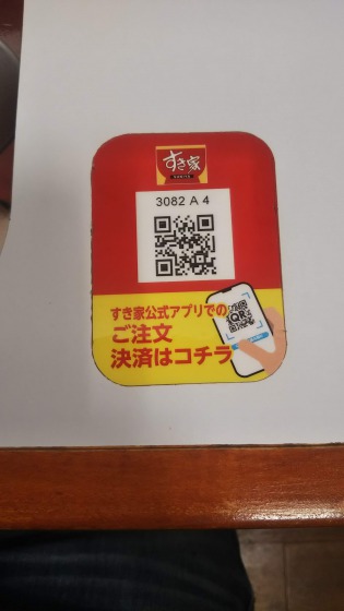 すき家に行きましたら、カウンターにこんなQRコードが貼り付けられているのを見つけました。