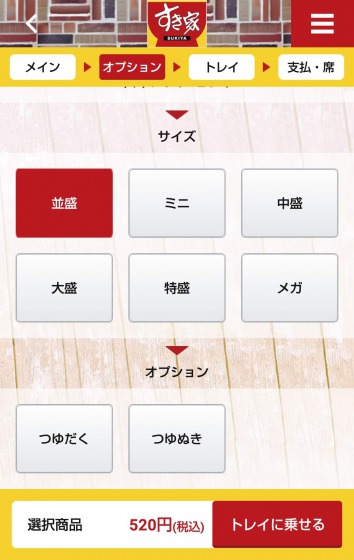 そして、注文するメニューを選びますと、金額が表示されます。