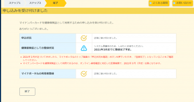 「マイナンバーカードを健康保険証として利用するための申し込みを受け付けました」