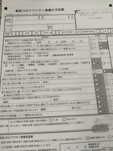 そして、当日、会場に入りますと、予診票に必要事項を記入します。